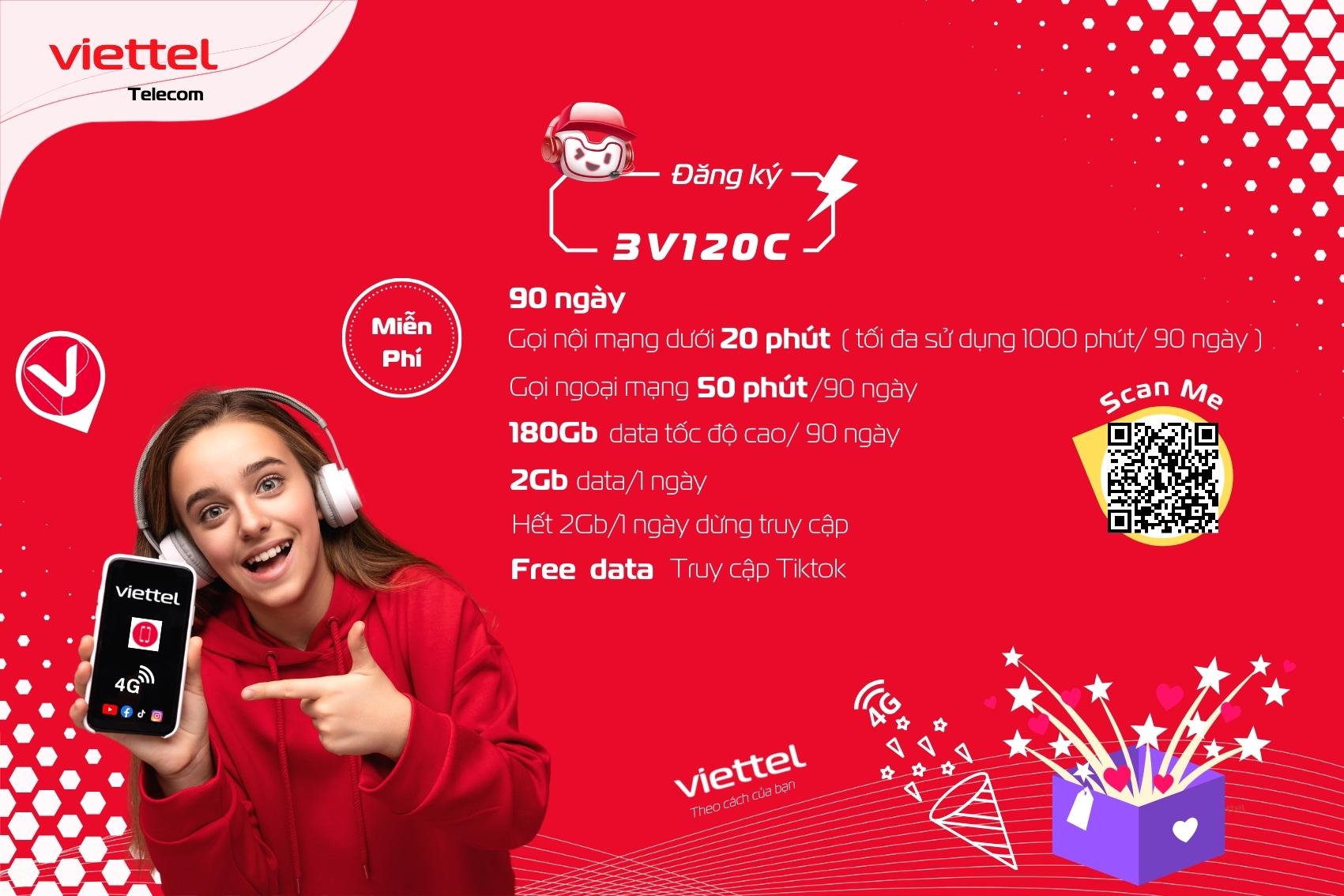 3V120C Là tên gói cước khuyến mãi Viettel sử dụng 3 tháng